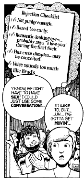 This is one of Cruse’s strengths, an ability to combine humour with pathos, kinky sex with innocence, and rage with thoughtfulness. Similarly, the style of his art adapts to the material, ranging from Peanuts-level simplicity to Warner-Bros-style exaggerated slapstick to, um, straight realism. As a general rule of thumb, Cruse has been moving away from the simpler art style of his early days, but he still switches, mixes, and matches art styles from one piece to the next.