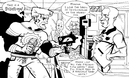 Dean Haspiel's primary contribution is "Billy Dogma", an unbalanced tough guy charged in one story with "trafficking an unsolicited belief system, panhandling for a purpose, and daydreaming of a better tomorrow". He's more than a little out of touch with reality or common sense, and a tendancy toward violence. But he has an endearing affection for his girlfriend Jane that makes the poor lug likeable. Haspiel's art tends to be more cartoony and wild than Neufeld's, and this feature is definitely more whacked out than the travel stories (or pretty much anything else in these books). The Billy Dogma spin-off book is mostly "new" stuff (that is, pieces not found in the Keyhole issues; some of it is material that appeared as a weekly strip in a Seattle alternative paper).