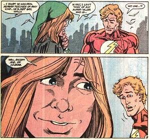 A few stories have alluded to or touched on his orientation. For example, in Flash #120-121, Piper suspected a right-wing anti-gay politician of being a supposedly-dead member of the Rogues, and went "rogue" again in an effort to take him down. A backup story in Flash annual #10 (a special "young romance" issue) featured Piper trying to deal with a former partner in crime and prevent him from harming his current partner in love James (who shows up from time to time). | ||