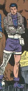 He's fast, can fly, and used to have a light-based power when in contact with his sister Aurora. Fans speculated about Northstar's orientation almost from the beginning, but AF writer John Byrne was coy about it. For a while Northstar was retconned into being a descendant of the Vanir. As columnist Peter David said in response, "That's right, Northstar's not gay, he's just a fairy. That's much better." The main evidence that he was supposed to be gay is in AF #7-8, which spotlighted Northstar and Aurora. The two of them visit an old friend of Northstar's, Raymonde Belmonde. When Aurora leaves the two of them alone briefly, Belmonde comments to Northstar, "So you didn't tell her all about me." A little later, we meet Belmonde's long-lost daughter, and Northstar is extremely surprised that he would have a child. In the next issue, the narration tells us: "Much more than a friend, Raymonde Belmonde taught a young Jean-Paul Beaubier [Northstar's secret ID] not to be afraid of his mutant power...or any other thing." And at the end of the story, Aurora blows up at Northstar in the following words: "You -- of all people -- dare to judge my love life!" In the Northstar origin story which was the backup of AF #11, James Hudson mentions that as a ski champion, Northstar had fame, money, and women, but didn't seem to be too interested in the women. Hudson puts this down to the athlete's obsession with competition. | ||