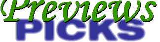 Previews is a catalog published monthly by Diamond Comic Distributors, the largest distributor of comic books to speciality shops in North America. It can be purchased at most comics shops, who will usually let customers order particular items in it (sometimes requiring a deposit or pre-payment). Since no comics shop can afford to stock every item in the catalog, this helps customers get the products they really want. But that 400+ page catalog can be a bit intimidating to wade through, and frankly, most of the stuff in it is... not very good. This set of pages (updated monthly) is an attempt to help sort through it and to pick out some of the real gems hidden in the "diamond" pile. But keep in mind that my tastes probably won't match perfectly with yours, and I only point out new series (not the latest issue of ongoing series, no matter how good they are), so you really need to peruse the catalog a bit yourself. In the interest of fairness and healthier competition, I also want to direct retailers' attention to two other distributors serving the speciality shop market: Cold Cut and FM International. Due to some publishers' exclusive deals with Diamond, these folks don't carry a full line of books, but they offer services and terms (like easy reorders of back issues), and even many books that Diamond doesn't. Check them out to see if they might be helpful in better serving your customers. On the other side of the coin, for publishers not carried by Diamond, if you have a new product coming out, let me know about it, and I'll consider mentioning it. Note: At this time I'm not listing online media unless it's in conjunction with material published and distributed in a physical format (such as paper). |